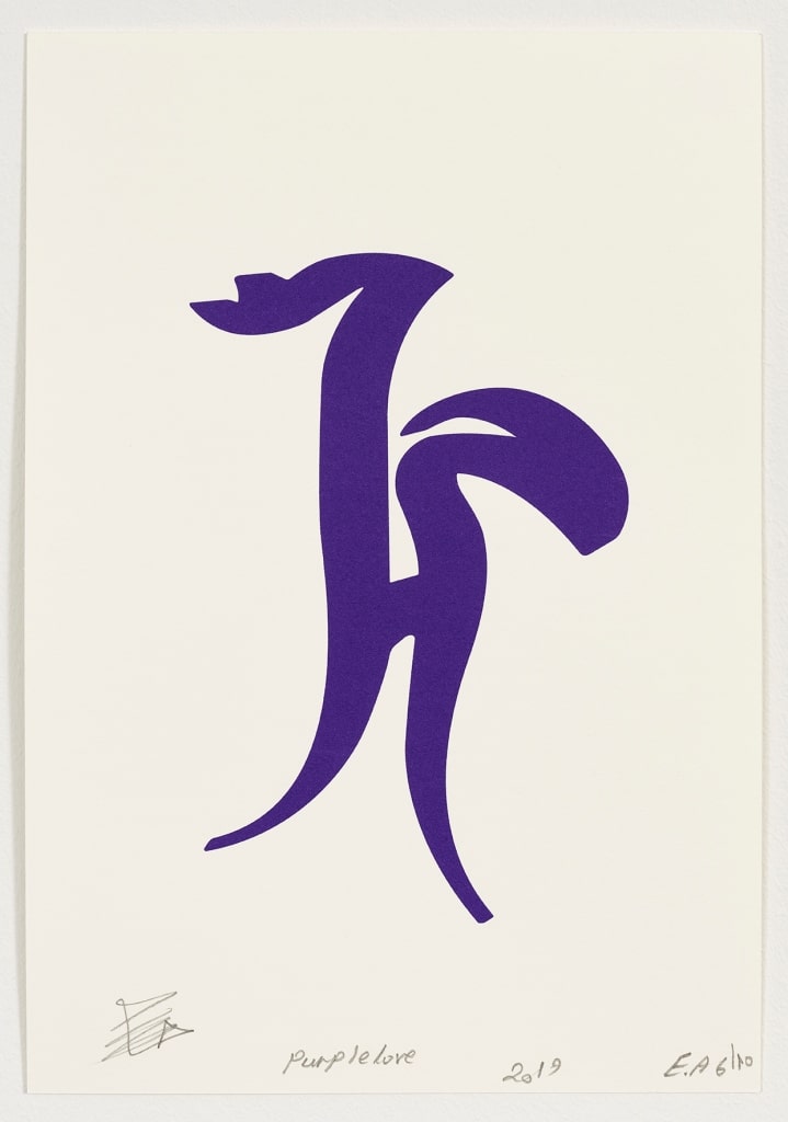 SCULPTURES INSTALLATIONS PRINTS PAINTINGS Thumbnail 1 Love purple screen-print on paper signed and numbered H.C with an edition of 100 29 X 20 cm. dated 2019 Back Next